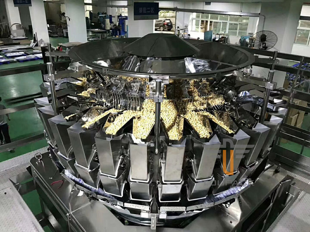 El pesador de combinación de frutas secas de mezcla de cabeza múltiple está diseñado para pesar cuantitativamente de alta velocidad y alta precisión de materiales pegajosos, incluidas las gotas de chicle, el azúcar hilado, las albóndigas, las verduras,y productos similares.
