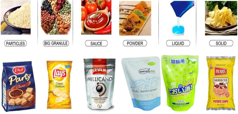 • Productos alimenticios: leche en polvo, proteína en polvo, harina de arroz, café en polvo, bebidas sólidas, condimentos, azúcar, dextrosa, aditivos alimentarios