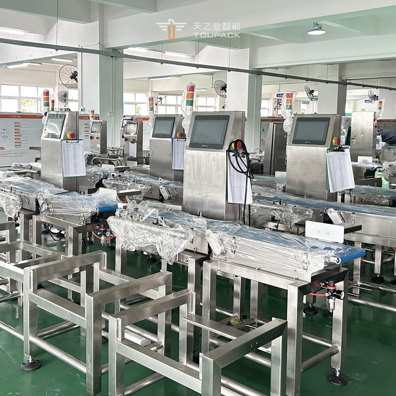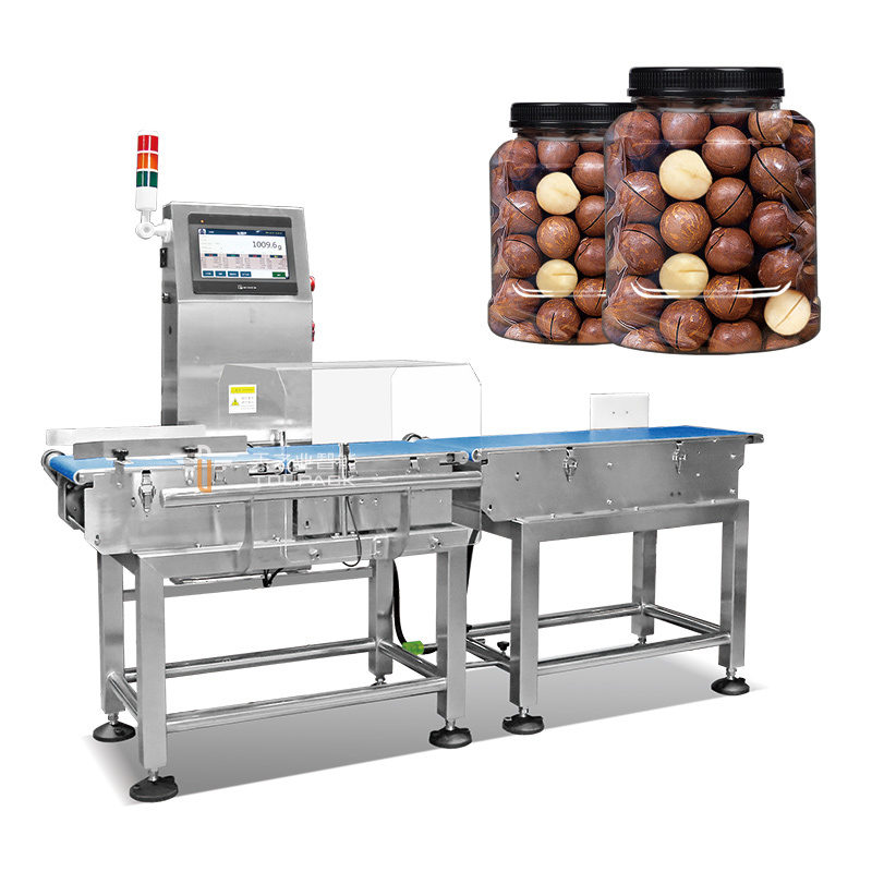 Verificador de peso de alimentos envasados con cinta transportadora y pesaje automático